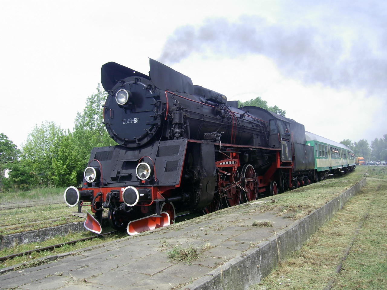 Ol49-69 z pociągiem specjalnym opuszcza Kruszwicę. Widok w kierunku Inowrocławia.