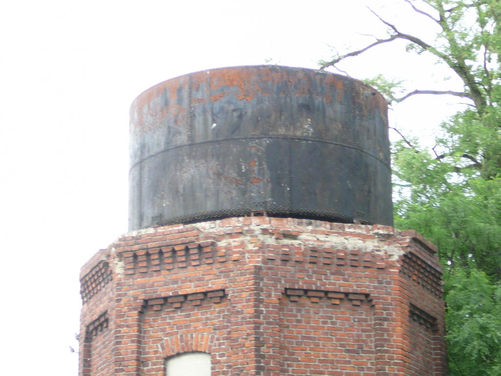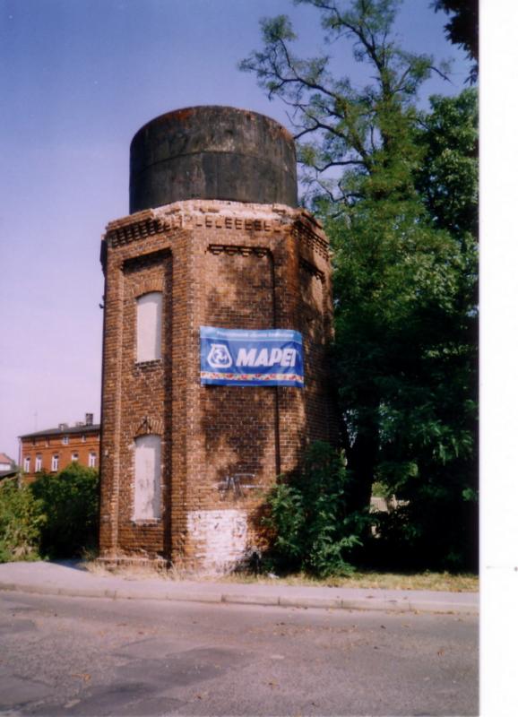Kruszwica. Wieża wodna przy ul. Lipowej we wrześniu 1999 roku; jeszcze kompletna.