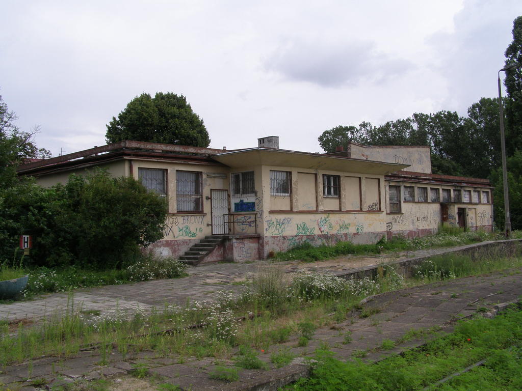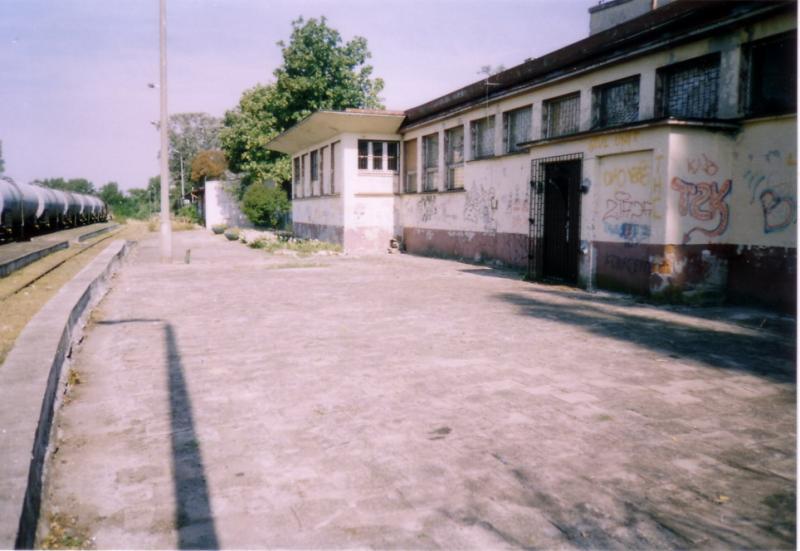 Budynek dworca i magazyn towarowy od strony peronów: w lewo Inowrocław, w prawo Mogilno. Na parterze, w przybudówce mieściła się nastawnia dysponująca.