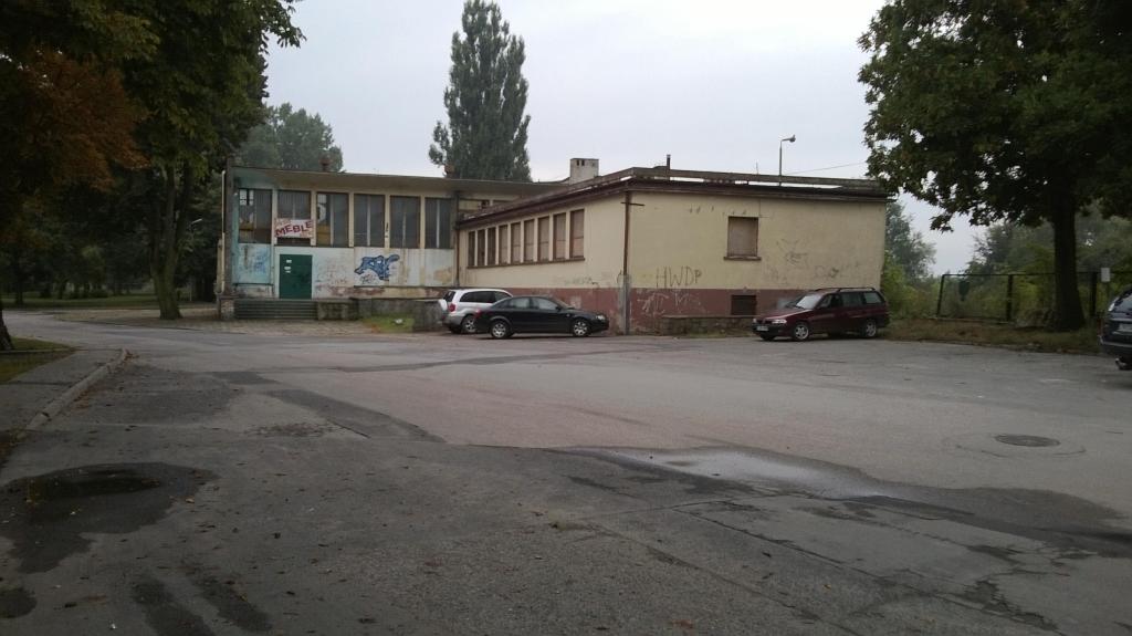 Stacja kolejowa Kruszwica. Uszkodzony dworzec kolejowy i magazyn towarowy od strony podjazdu.
