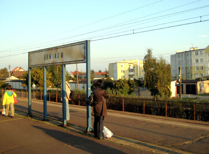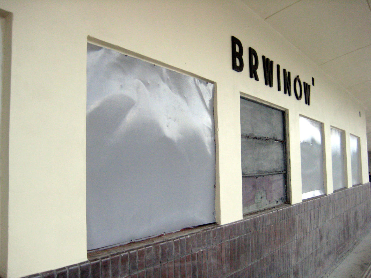 Brwinów - widok na peron z pociągu; źródło: aukcje.