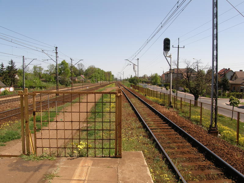 Widok w kierunku Pruszkowa. Pod zadaszeniem kasa biletowa.