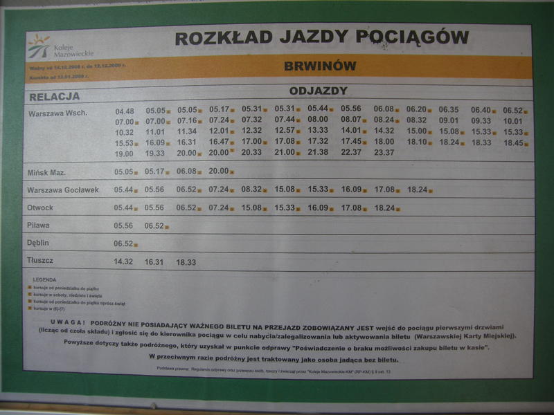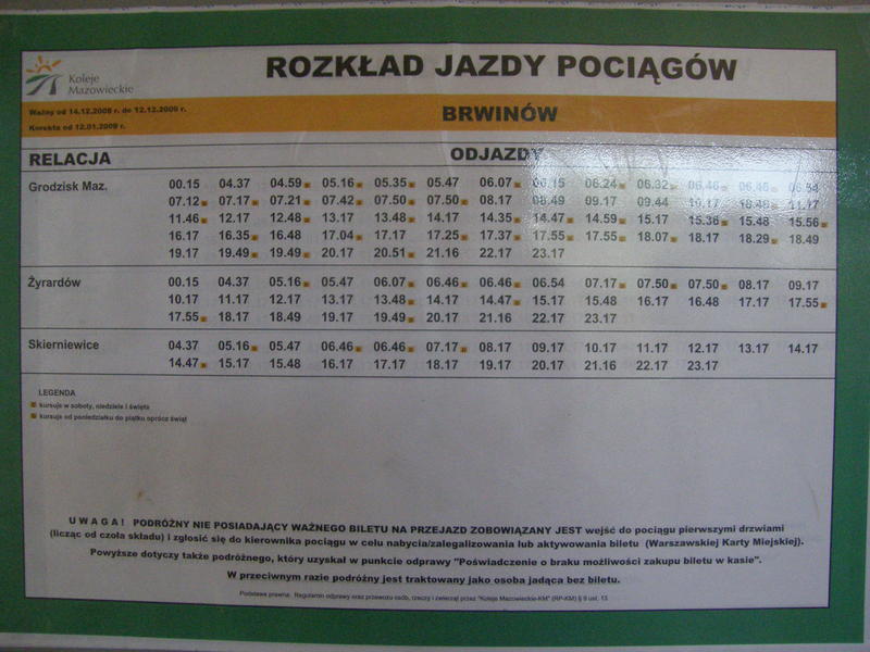 Rozkład jazdy ważny od 14-12-2008 do 12-12-2009 po korekcie z 12-01-2009.