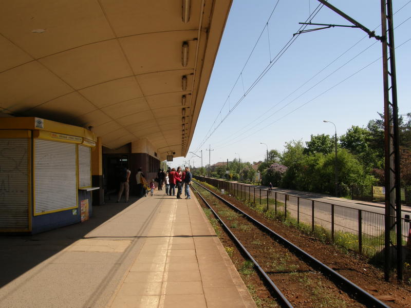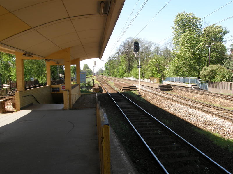 Widok w kierunku Milanówka. Pod zadaszeniem kasa biletowa.