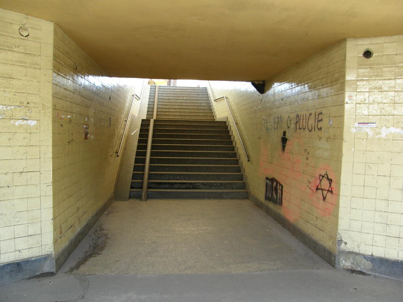 Wejście na peron spod wiaduktu nad ulicą Wilsona.