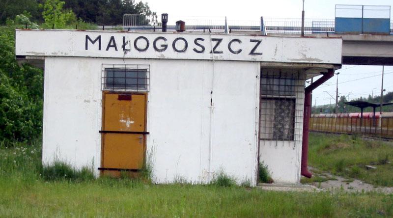 Stacja PKP Małogoszcz. Od strony północnej stacji był czynny drugi budynek z poczekalnią i kasą biletową.