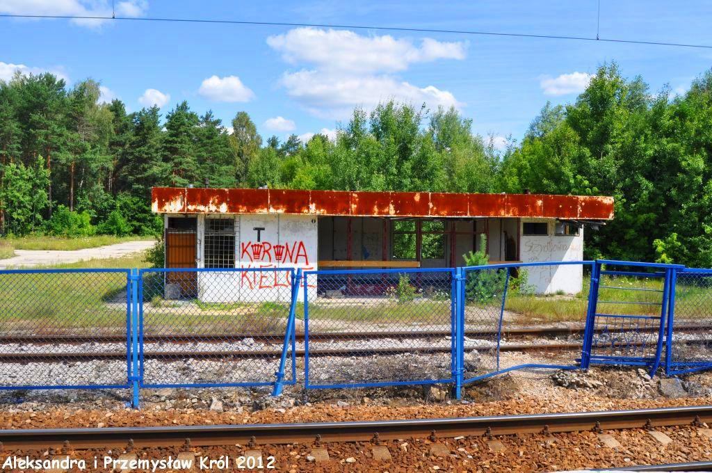 Budynek dworcowy, blok mieszkalny. Obiekty widoczne od strony torów. W lewo Małogoszcz Park Towarowy, Kielce w prawo Ludynia Dwór, Włoszczowa, Częstochowa Stradom.