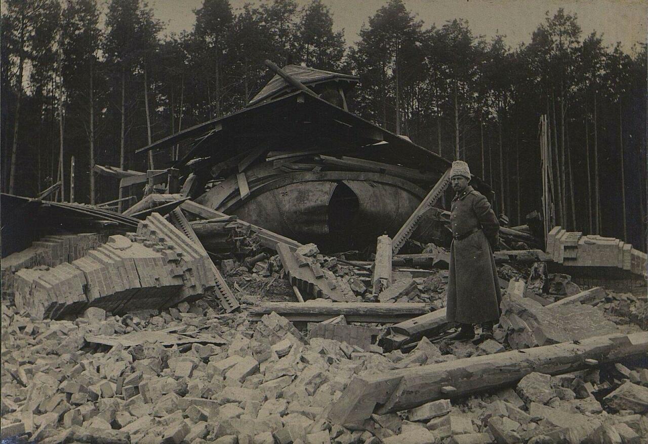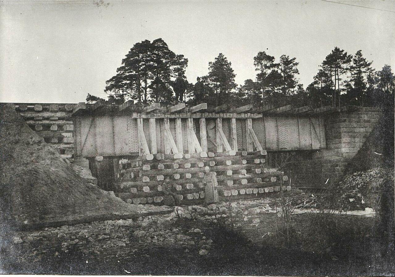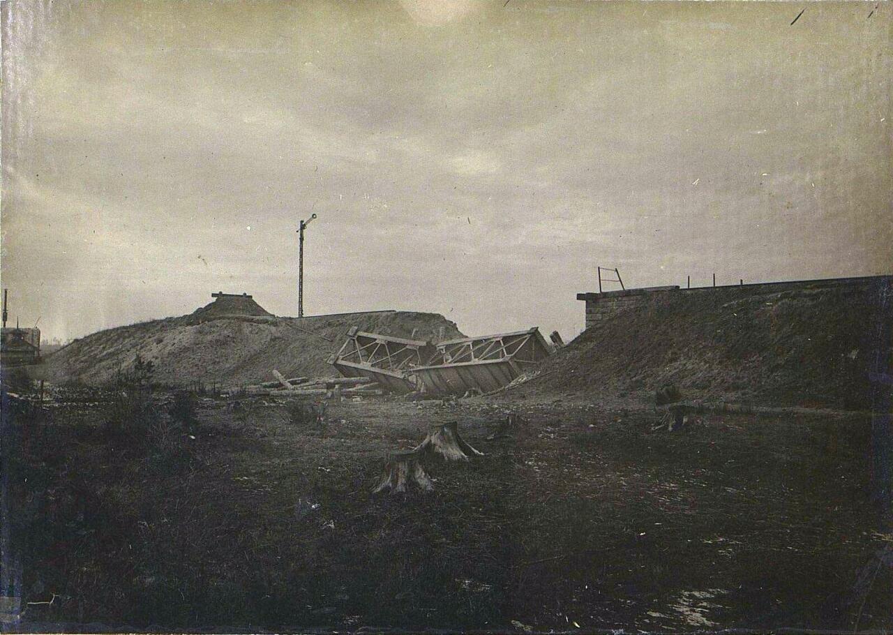 Niszczenie dopiero co odbudowanego mostu przy wjeździe do stacji z powodu zmiany sytuacji na froncie.