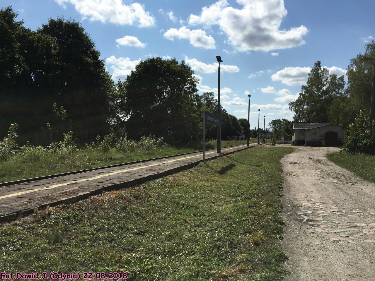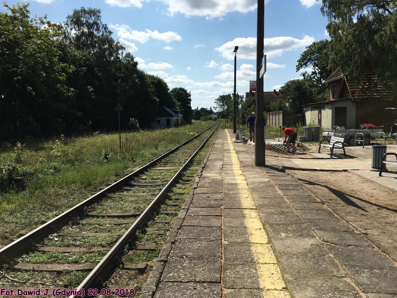 Został tylko jeden peron z jedną krawędzią, bilety kupuje się w pociągu. Na ulicy tartacznej obok dworca jest przejazd kolejowy z samoczynnymi półrogatkami.