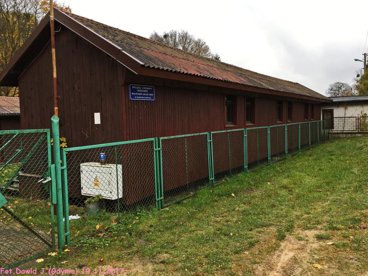 Budynek wypoczynkowy Związku Zawodowego Kolejarzy, pracowników zakładu taboru w Skarżysko Kamiennej. Budynek znajduje się w pobliżu peronu. Widok w kierunku Kościerzyny/Bydgoszczy Głównej.
