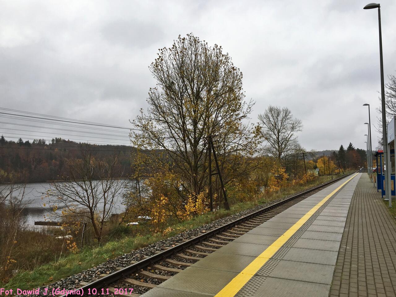 Przystanek PKP Krzeszna. Widok w kierunku Kościerzyny.