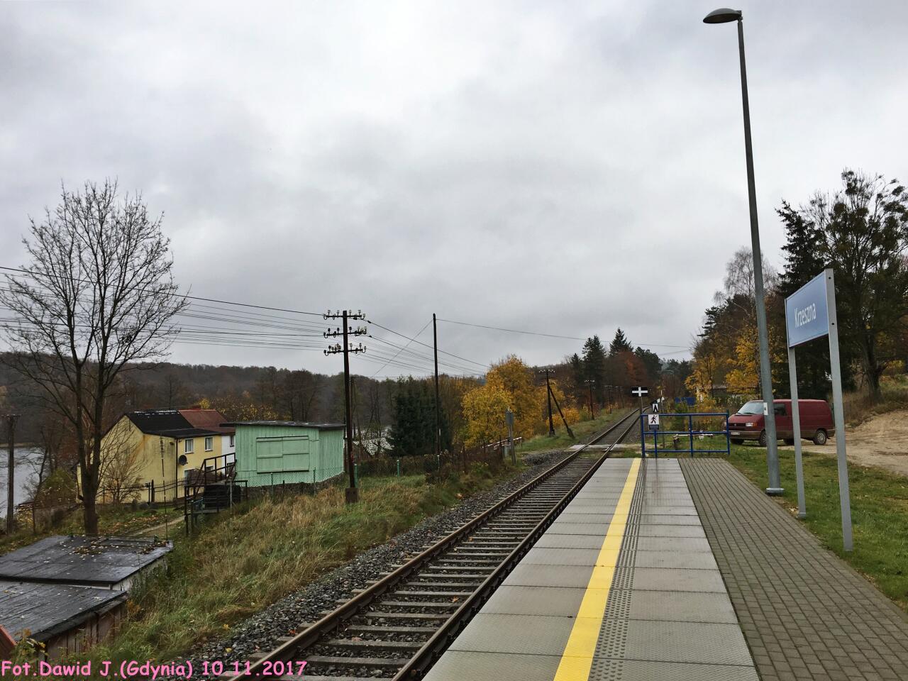 Przystanek PKP Krzeszna. Widok w kierunku Somonina/Gdyni.