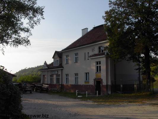 Budynek dworca Wieżyca widziany od strony ulicy.