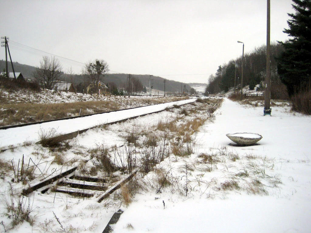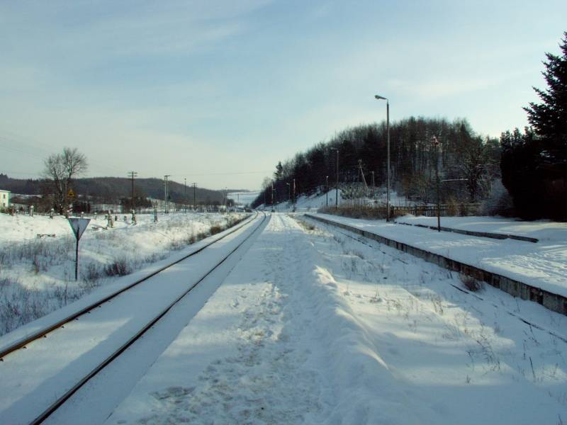 Przystanek PKP Wieżyca. Zimowy widok w kierunku Kościerzyny.
