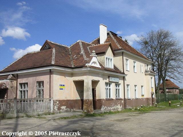 Budynek dworca od strony peronów i wjazdu z Kościerzyny. Po prawej przybudówka, w której mieściła się nastawnia dysponująca.