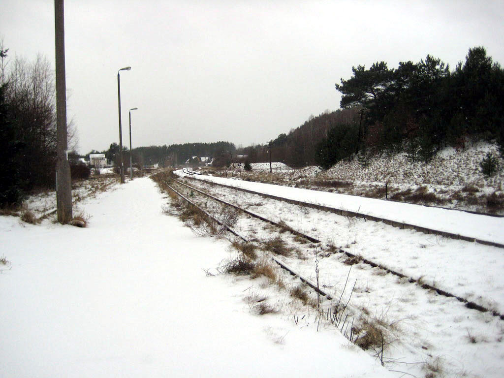 Przystanek PKP Wieżyca. Zimowy widok w kierunku Gdyni.