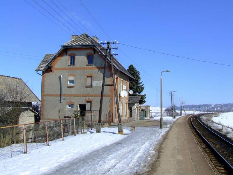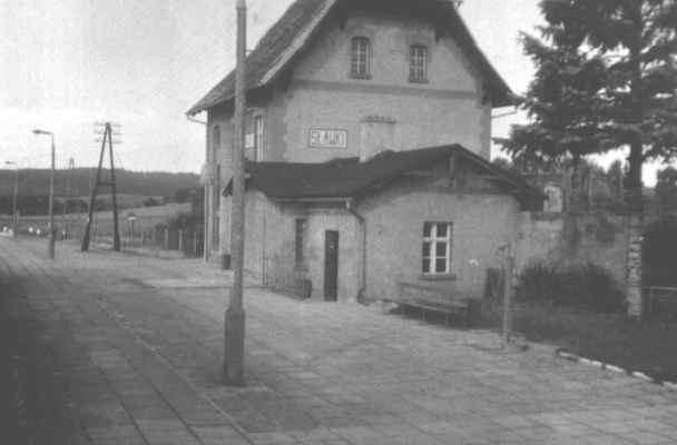 Widok na dworzec i kolejowy budynek mieszkalny od strony peronu i wjazdu z Somonina/Gdyni.