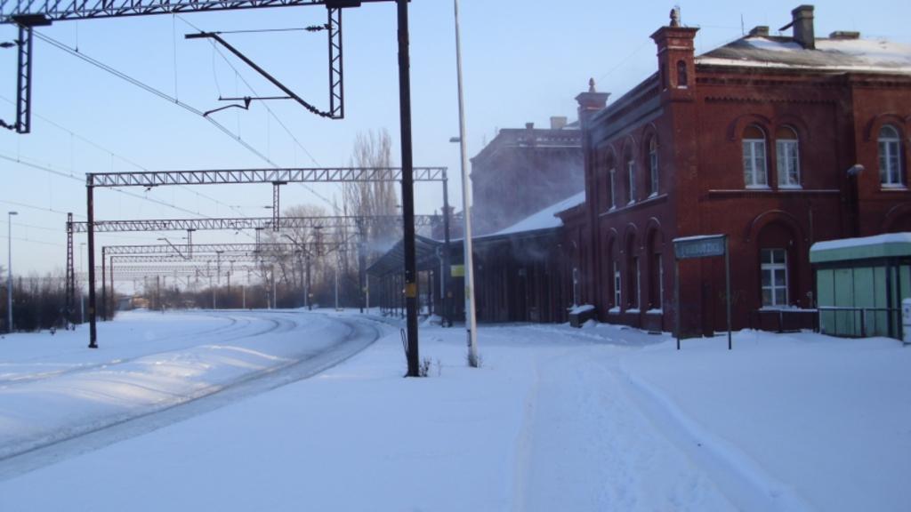 Pierwszy budynek stacyjny przerobiony na mieszkania. Obecny budynek dworca mimo, że okazały i o ładnej bryle i detalu chluby miastu nie przynosi. Część pomieszczeń na parterze jest opuszczona, okna pozasłaniano paskudną dyktą. Ściany dworcowe są wymazane i brudne. (info: wasiukibic, 23-09-2008)