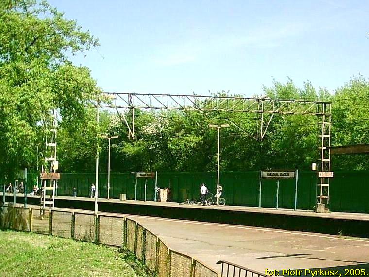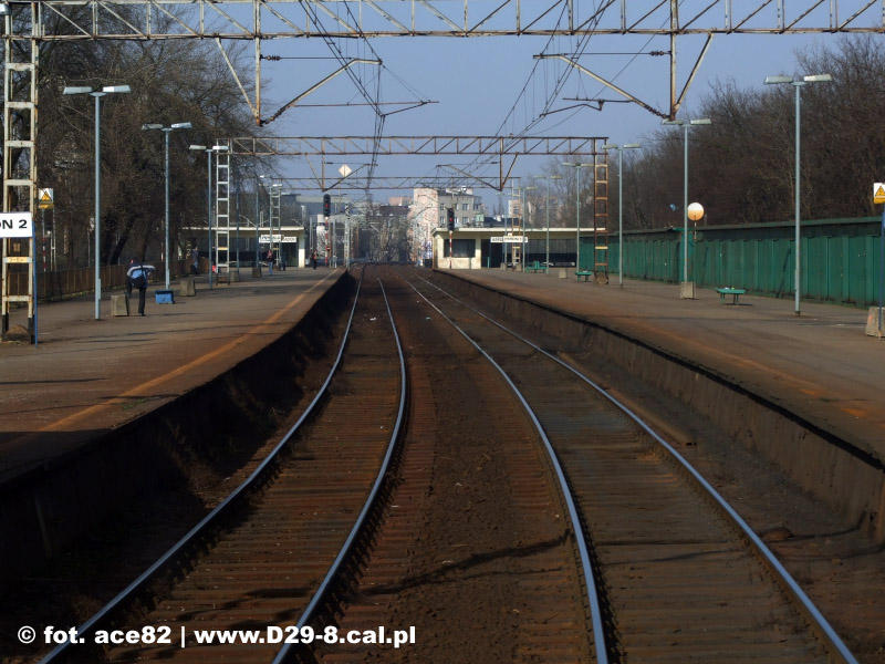 Po lewej peron dla pociągów w kierunku Warszawy Wschodniej. Widok w kierunku Warszawy Śródmieście. 3,1 km.