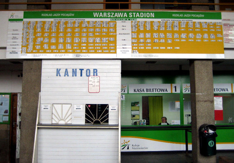 Przystanek PKP Warszawa Stadion. Rozkład jazdy i kasy biletowe Kolei Mazowieckich w budynku dworca autobusowego.