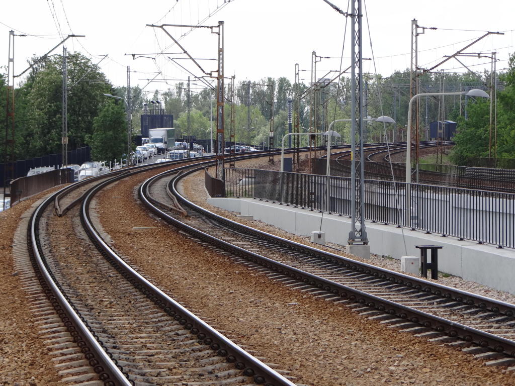 Wiadukty nad ulicą w rejonie Stadionu Narodowego imienia Kazimierza Górskiego. Linia dalekobieżna dalej, linia podmiejska bliżej. W lewo Warszawa Centralna, w prawo Warszawa Wschodnia. 3,0 km.