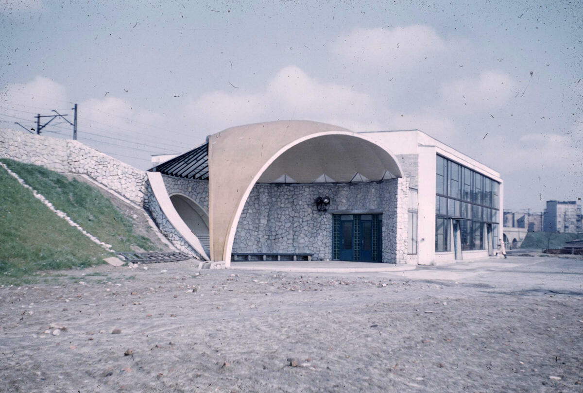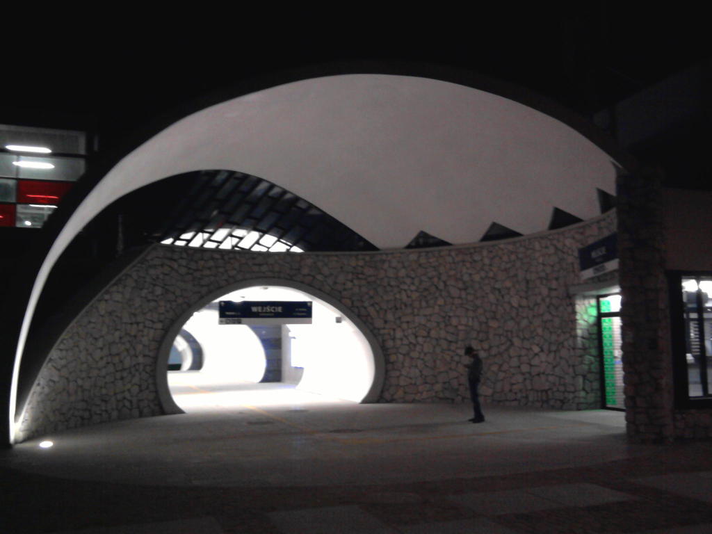 Muszla prowadząca do przejścia na perony, po prawej wejście do budynku stacyjnego.