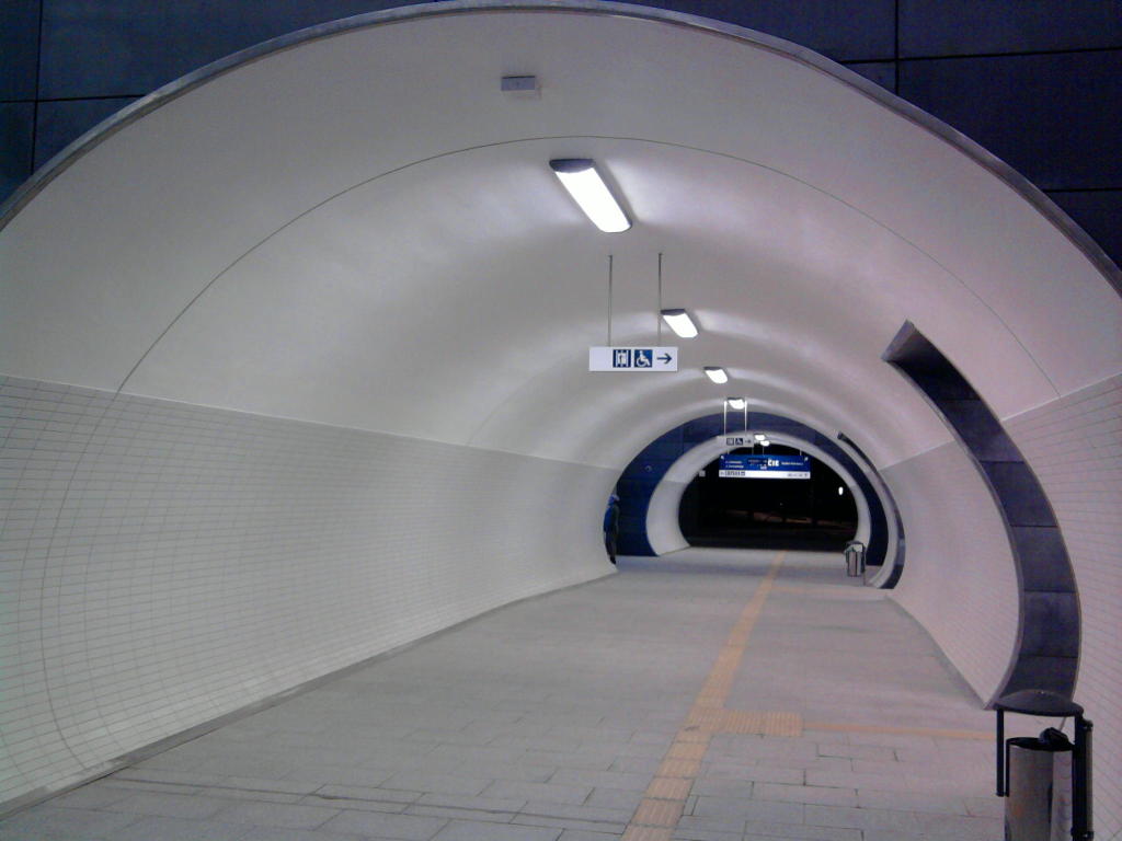 Warszawa Stadion. Wejście z tunelu na peron w kierunku Śródmieścia.