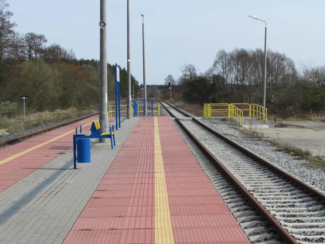 Widok z nowego peronu w kierunku Wielbarka/Ostrołęki.
