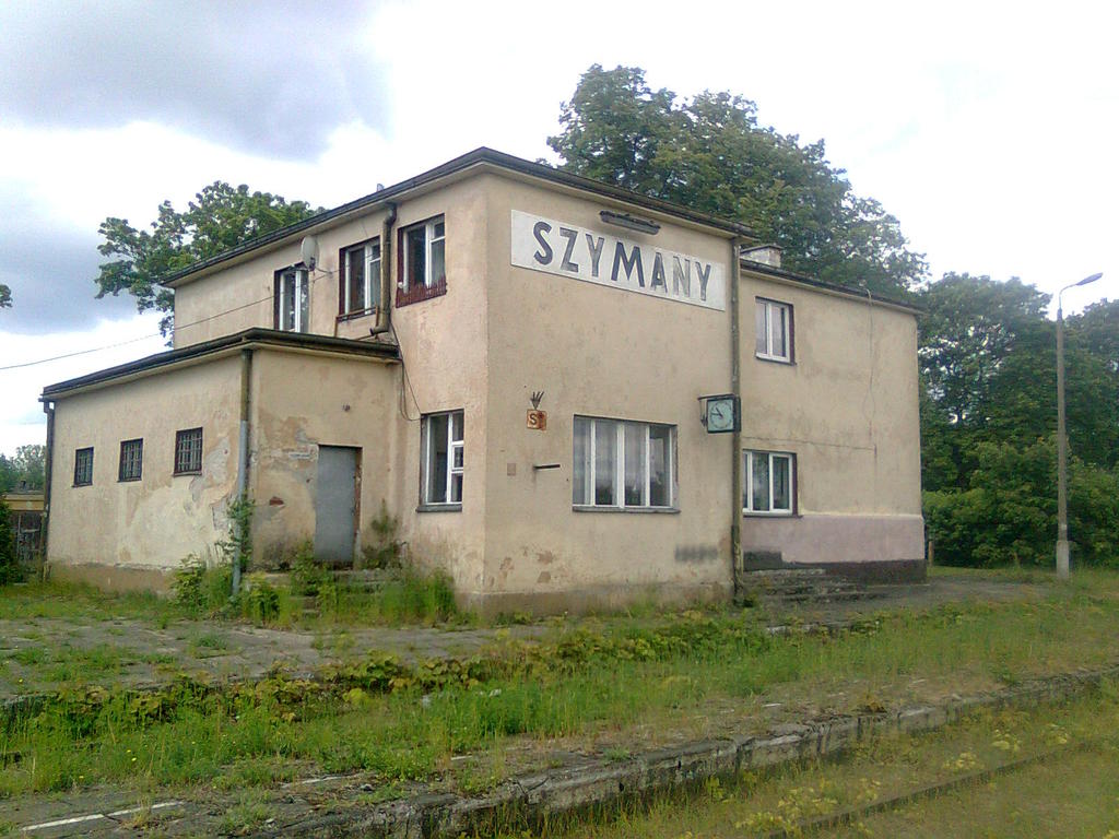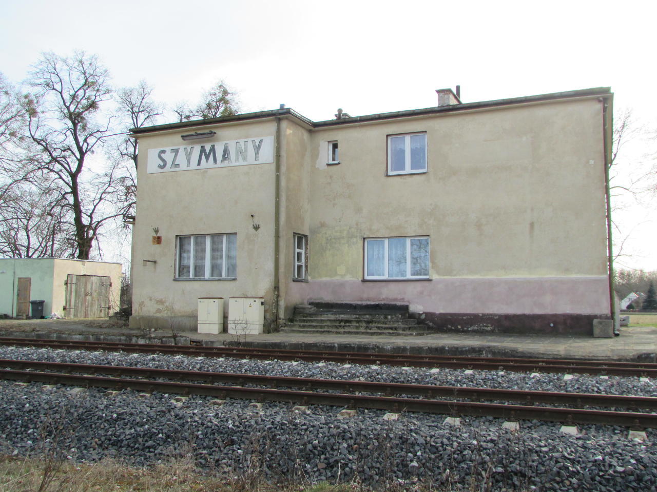 Szymany. Budynek dworca od strony peronów: w prawo Szczytno, w lewo Wielbark/Ostrołęka. Na parterze, w wysuniętej części mieściła się nastawnia dysponująca.