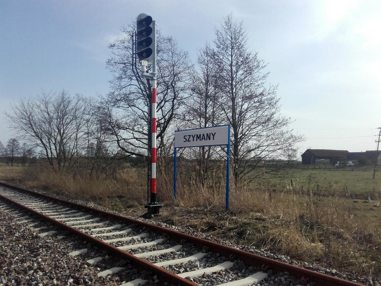 Szymany, widok na perony sprzed budynku dworca w stronę Szczytna.