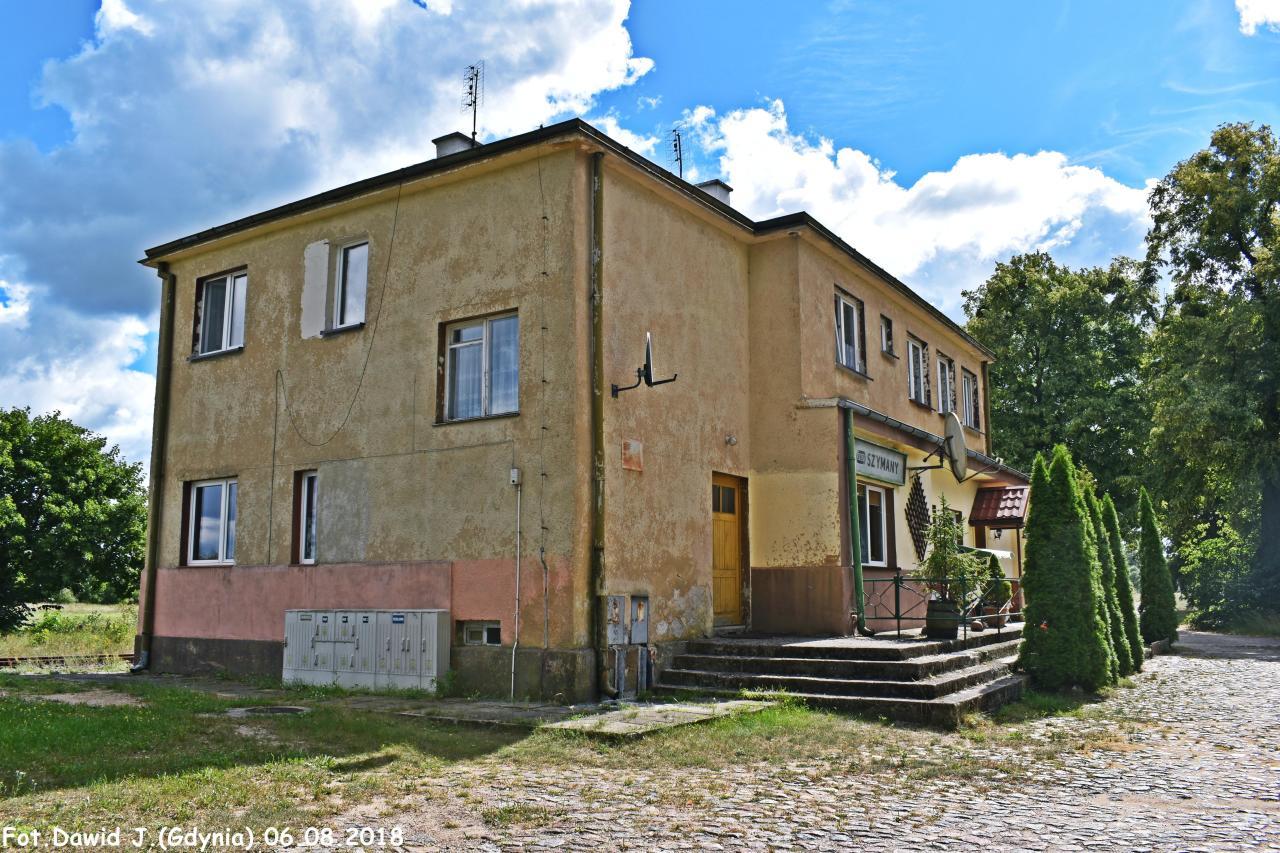 Dawny dworzec pełni dzisiaj funkcje mieszkalną. Dawniej, na parterze mieściła się w nim nastawnia, jednak pomieszczenie w którym się ona znajdowała stoi obecnie puste. Widok od strony torów i wjazdu ze Szczytna.