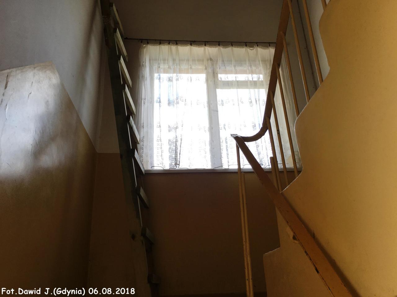 Wnętrze budynku dworcowego. Klatka schodowa w części mieszkalnej budynku.