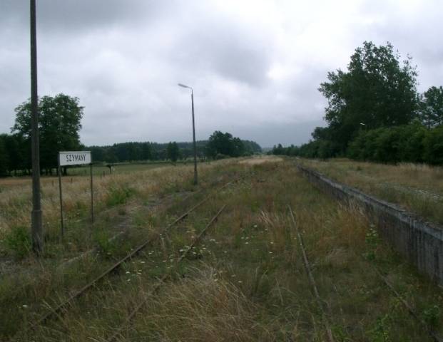 Szymany, widok na perony sprzed budynku dworca w stronę Wielbarku/Ostrołęki. Na parterze, w wysuniętej części mieściła się nastawnia dysponująca.
