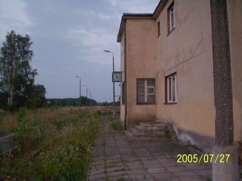 Dawny dworzec pełni dzisiaj funkcje mieszkalną. Dawniej na parterze mieściła się w nim nastawnia, jednak pomieszczenie w którym się ona znajdowała stoi obecnie puste. Widok od strony peronu: w prawo Szczytno, w lewo Wielbark/Ostrołęka.