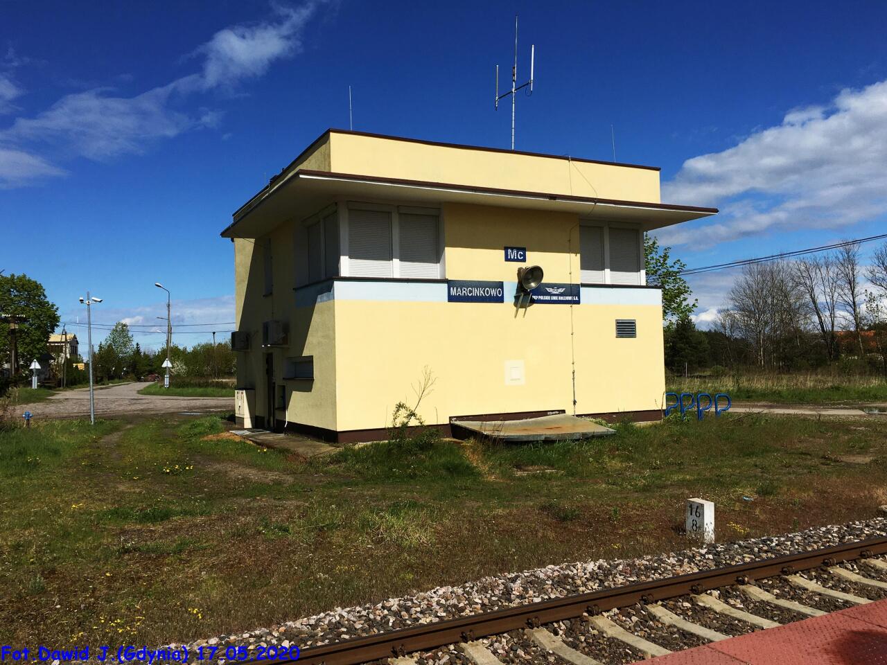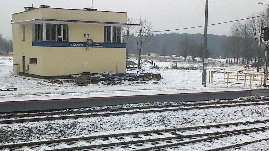 Jak widać na zdjęciu, budynek nastawni na stacji Marcinkowo jest bardzo zadbany. Sama stacja będzie wyglądała lepiej, ponieważ prace modernizacyjne na odcinku Olsztyn-Marcinkowo mają zakończyć się 17 grudnia br. W lewo Olsztyn, w prawo Szczytno.