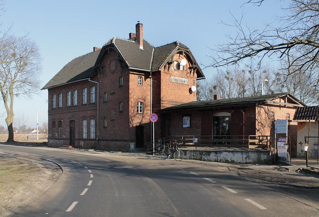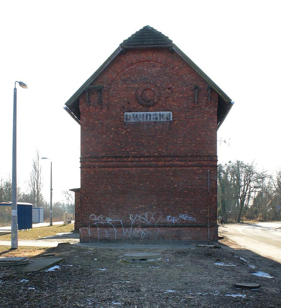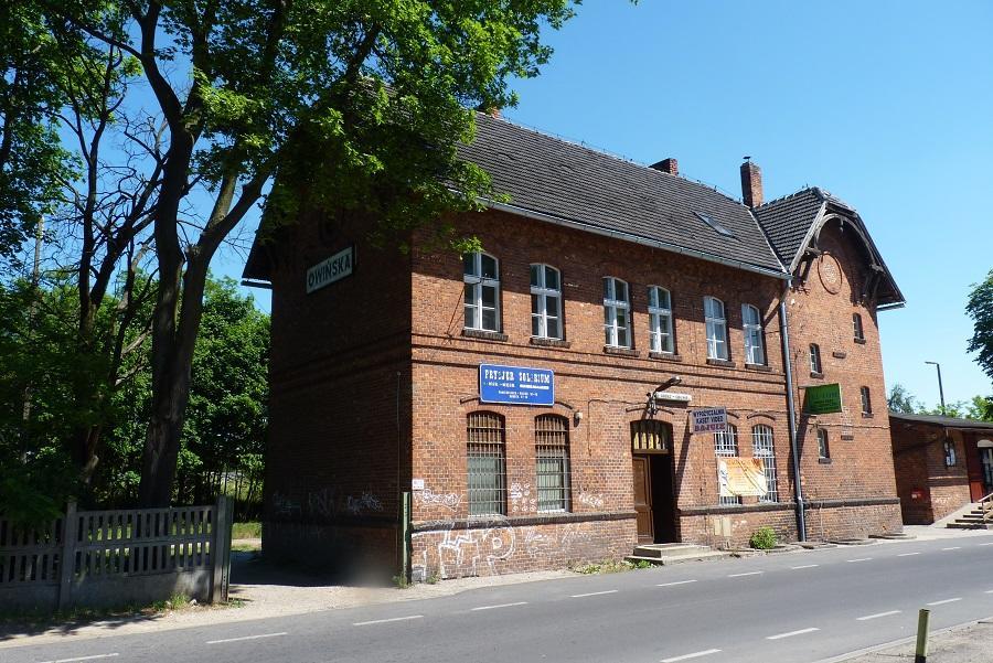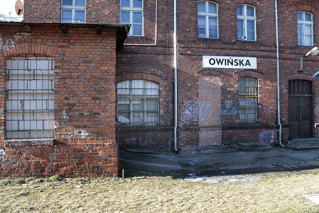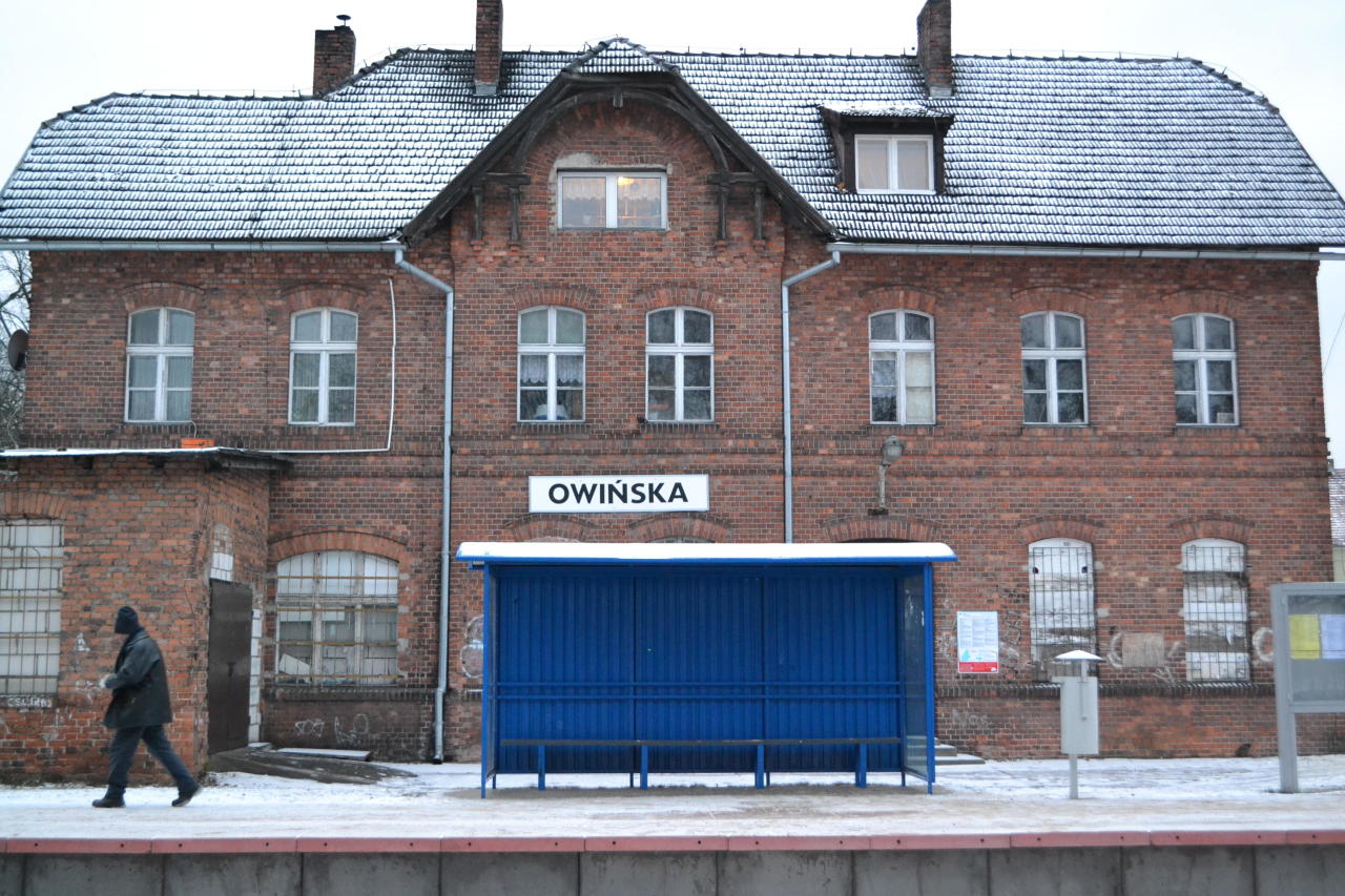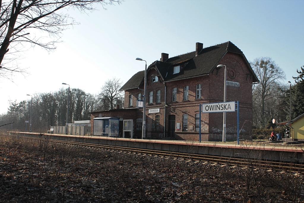 Owińska. Budynek stacyjny od strony Czerwonaka, w kierunku Bolechowa.