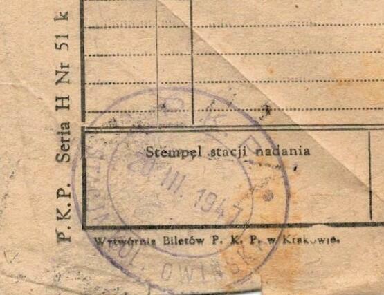 Fragment skanu listu przewozowego z widoczną nazwą stacji Owińska (stempel).