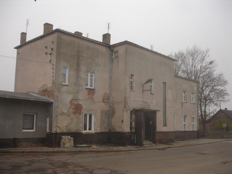 Budynek dworca od strony peronów i wjazdu z Poznania. W przybudówce mieściła się nastawnia dysponująca.