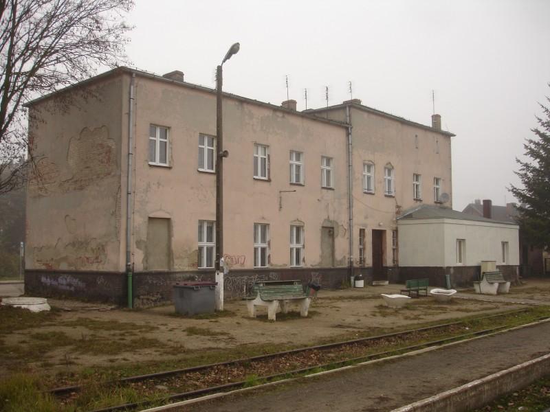 Budynek dworca od strony peronów: w lewo Poznań, w prawo Sława Wielkopolska/Wągrowiec. W przybudówce, po prawej mieściła się nastawnia dysponująca.