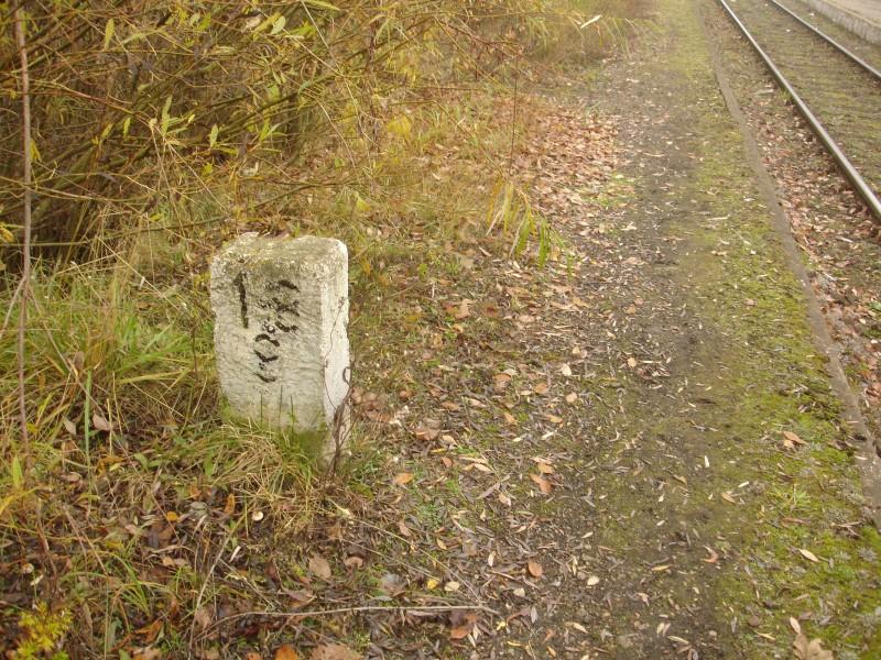 W4 na końcu peronu w kierunku Sławy Wielkopolskiej/Wągrowca. Z prawej słupek kilometrowy.
