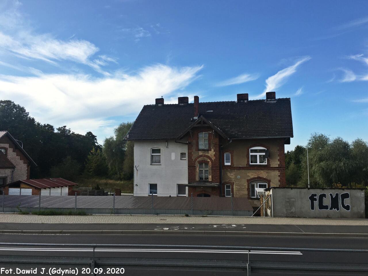 budynki dworcowe: 2019-10-06: Budynek dworca, częściowo adaptowany na cele mieszkalne, mocno podniszczony. Hol dworca czynny, w środku kasy i ławki. (info. Jan Kowalski)