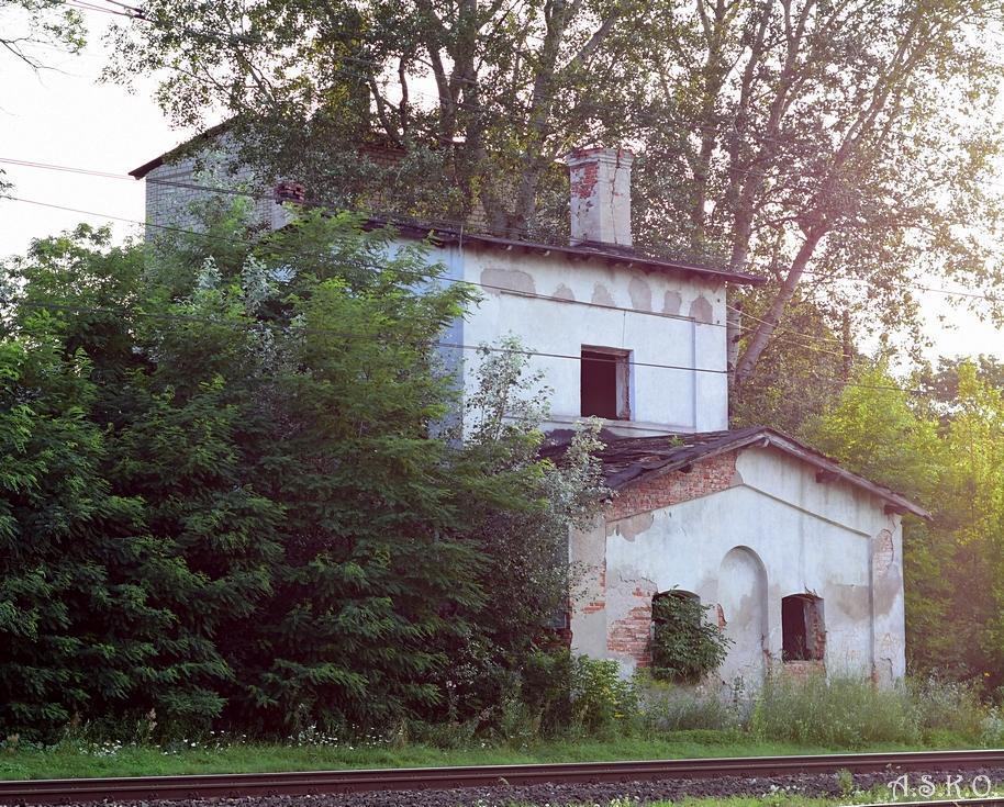 Popadający w coraz większą ruinę dawny budynek dworcowy.