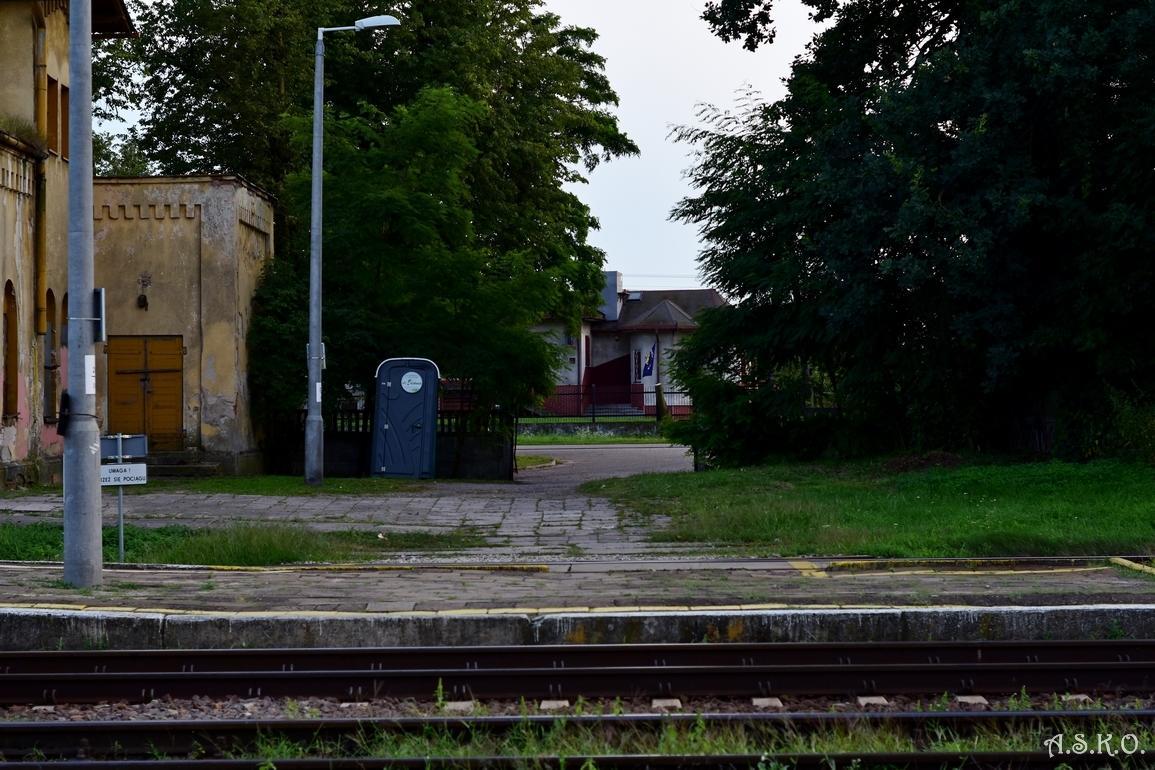 Popadający w coraz większą ruinę dawny budynek dworcowy. Ale szalet jest.