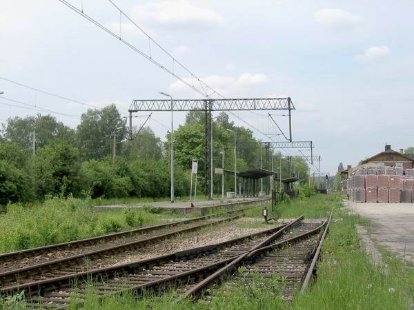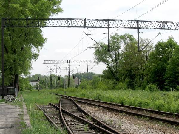 Kęty (117) km 42,0. Peron wyłączony z eksploatacji. Widok w kierunku Bielska-Białej.