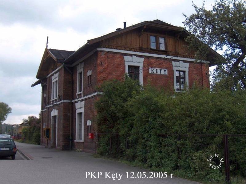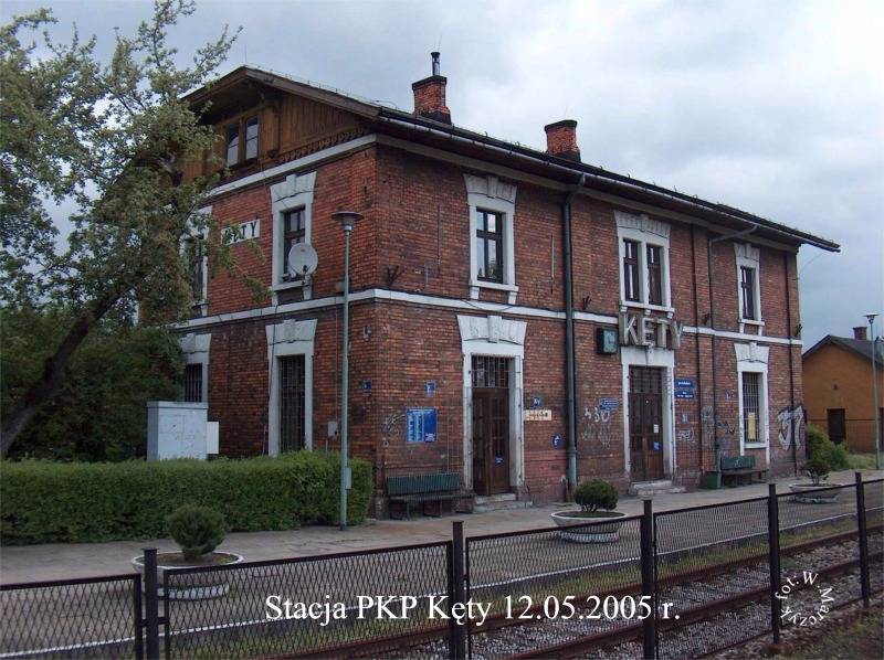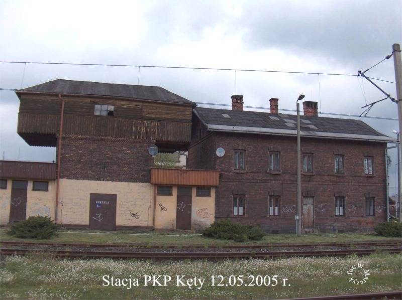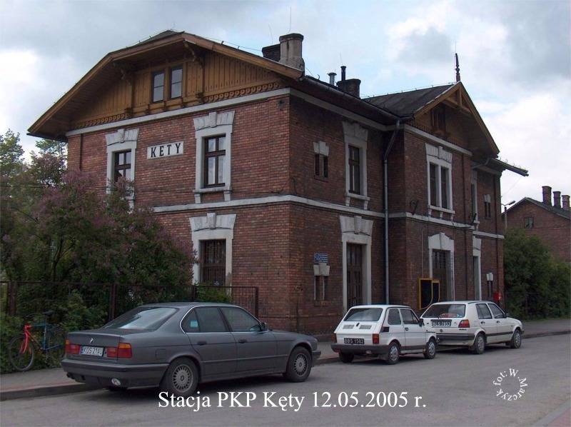Kęty (117) km 41,9. Budynek dworca. Widok od strony peronów; w lewo Bielsko-Biała, w prawo Wadowice.