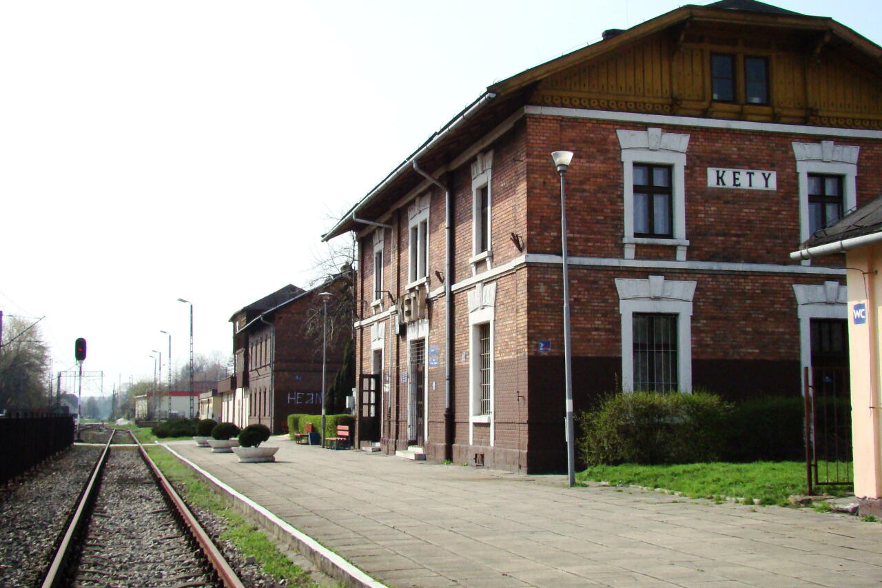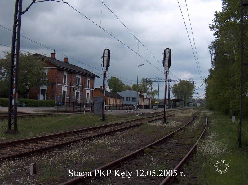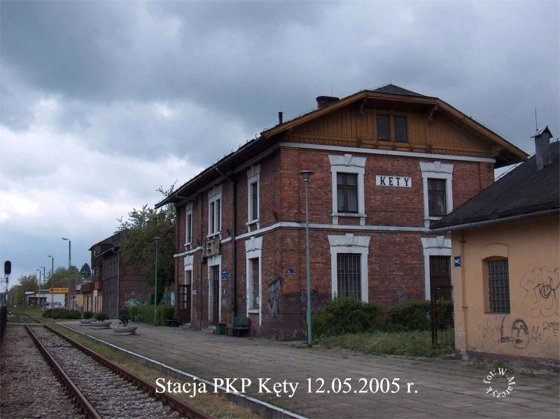 Kęty (117); km 41,9. Peron czynny. Z prawej dworzec. Widok od strony Wadowic.