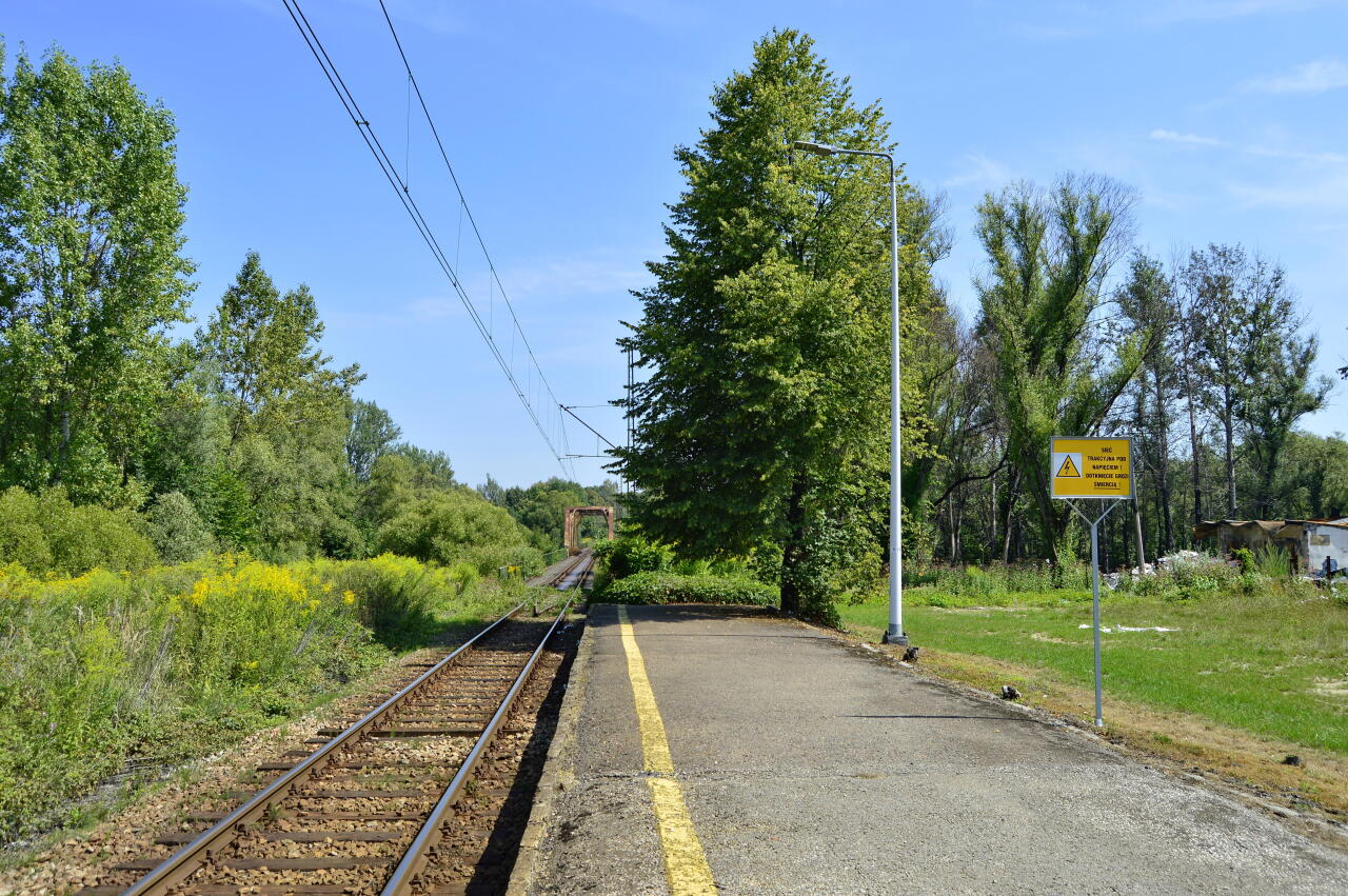 | perony: | 2005-04-16: Peron jednokrawęziowy, w około połowy swojej długości przecięty poprzecznie przebiegającą ulicą. (info: Andrzej Wysocki). | |