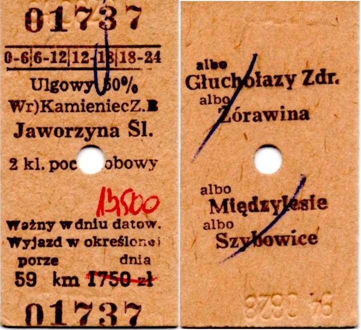 Zdjęcie biletu (2 strony) wystawionego 28.08.1994 r.