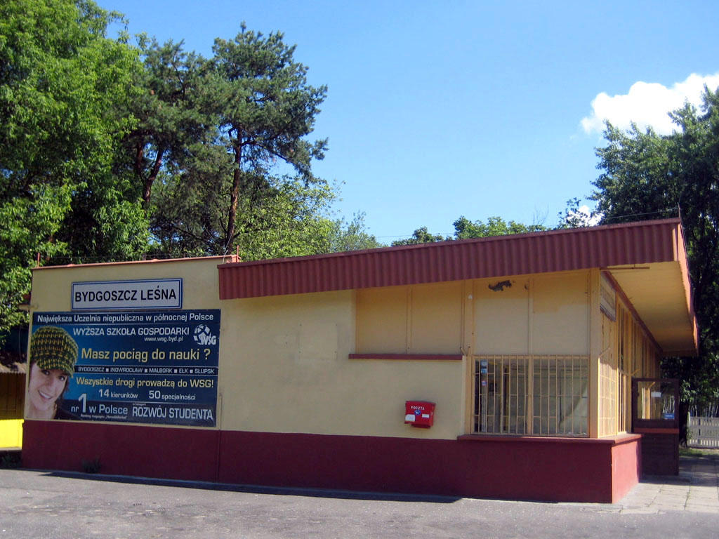 PKP Bydgoszcz Leśna. Budynek dworcowy widok od strony torów.