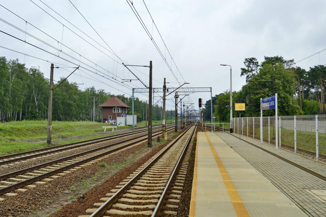 Widok z peronu 1 w kierunku Bydgoszczy Główniej i Maksymilianowa. Po lewej stronie peron 2.